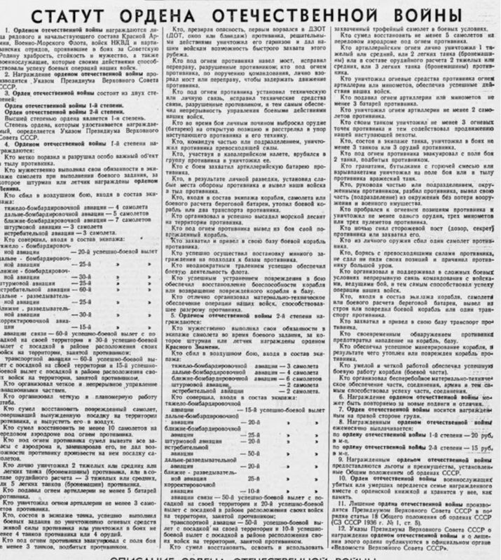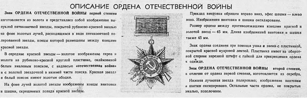 Орден Отечественной войны – первая награда, появившаяся в годы Великой Отечественной войны. Также это первый советский орден, имевший разделение на степени.