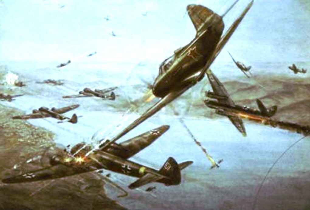 Несмотря на то, что в первый день войны по всему фронту немецкими авиаударами было уничтожено 1200 советских самолетов, из которых 800 - на земле, личный состав ВВС Красной армии мужественно сражался с врагом.