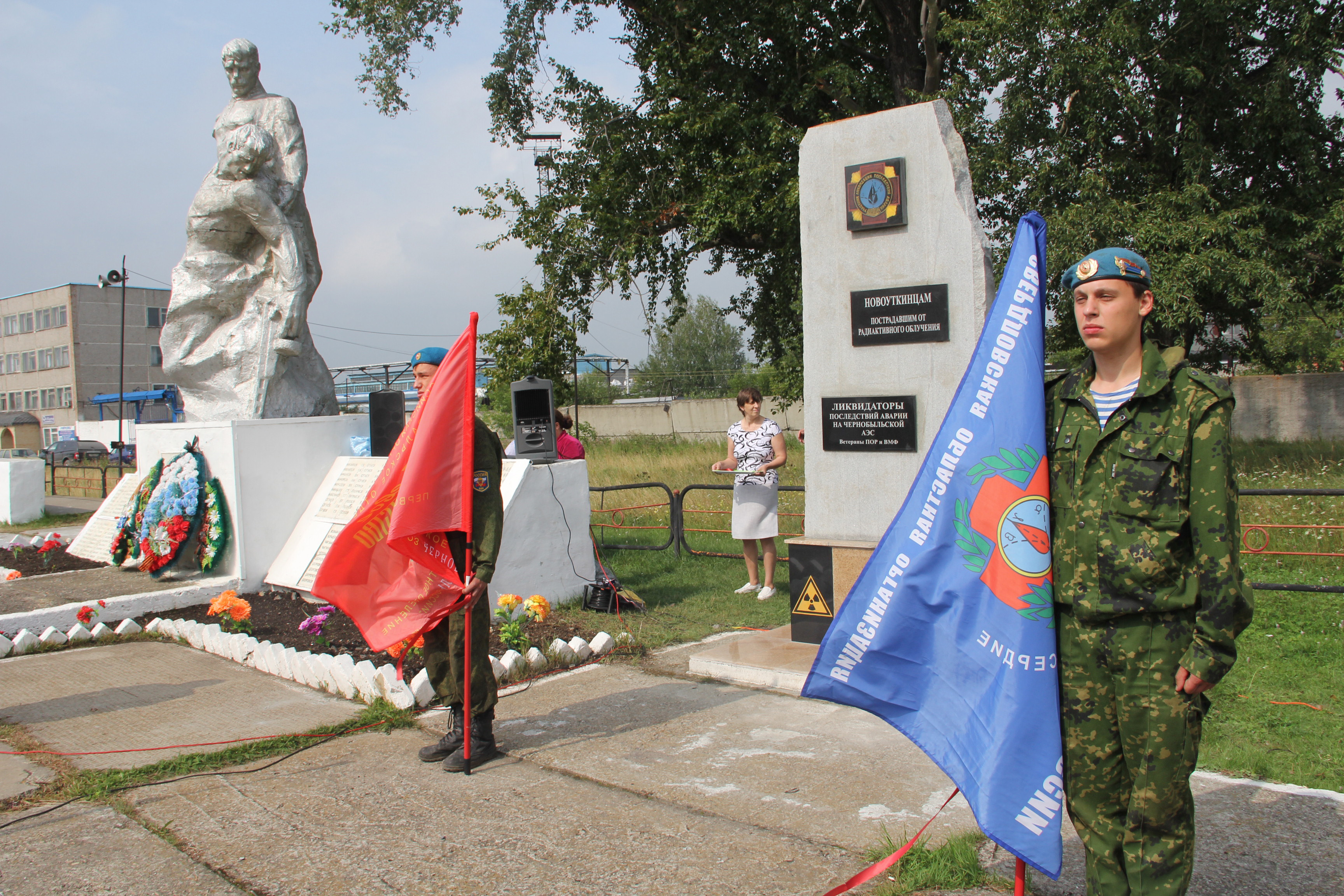 А первый памятник жителям Новоуткинска, погибшим в годы Великой Отечественной войны, был установлен в мае 1967 года в центре поселка. Сейчас это площадь имени Виталия Васильевича Томиловских – Героя Советского Союза. Он представлял собой скромный обелиск с памятной табличкой и пятиконечной звездой. Позже по обе стороны обелиска были установлены памятные доски с выбитыми именами погибших новоуткинцев и поставлена оградка из толстых цепей.