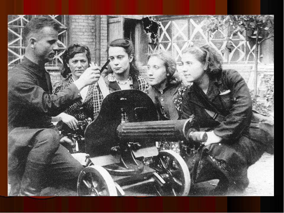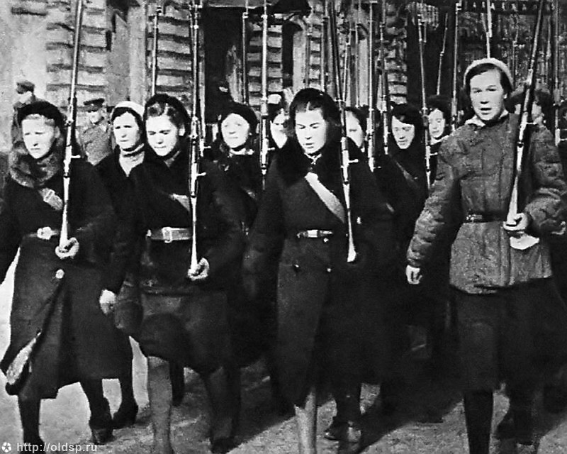Наряду с мужчинами занимали место в боевом строю советские девушки. В танковых войсках служили комсомолки М.В. Октябрьская и И.Н. Левченко, разили с неба фашистов лётчицы Л.В. Литвяк, Е.В. Буданова, А.А. Егорова и др. Специальные подразделения из девушек-комсомолок насчитывали в своих рядах более 200 тысяч пулемётчиков, снайперов и других военных специалистов. Любовь, уважение воинов заслужили отважные комсомолки Паша Михайлова и Дина Крипицкая. За первые месяцы войны подруги-санитарки вынесли с поля боя более 120 раненых краснофлотцев. За свои боевые заслуги в борьбе с немецко-фашистскими захватчиками орденами и медалями были награждены 100 тысяч девушек, 58 из которых получили звание Героя Советского Союза.