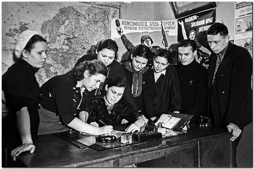 В 1941 г. в СССР было более 10 млн. комсомольцев. В первые же дни войны военкоматы и райкомы партии, и райкомы комсомола осадили молодые люди с требованием быстрее направить их на фронт. Не дожидаясь повесток, они просили их отправить в Красную Армию или отряды народного ополчения. Длинные очереди у военкоматов выстраивались по всей стране.