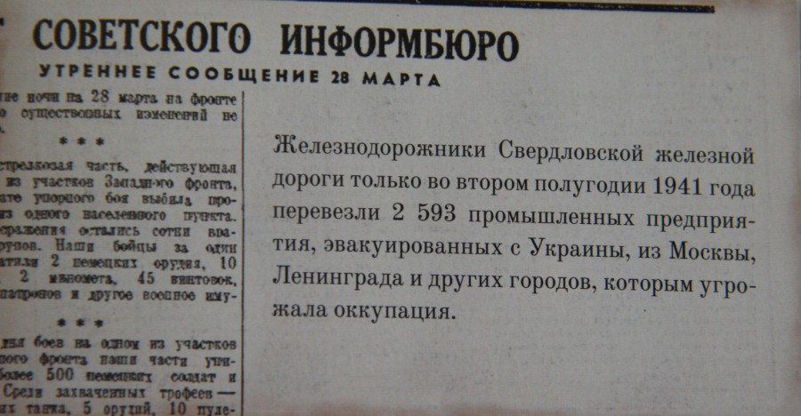 Свердловские железнодорожники внесли неоценимый вклад в общее дело победы. В годы военного лихолетья магистраль не останавливалась ни на секунду, неустанно работая для фронта и для страны.