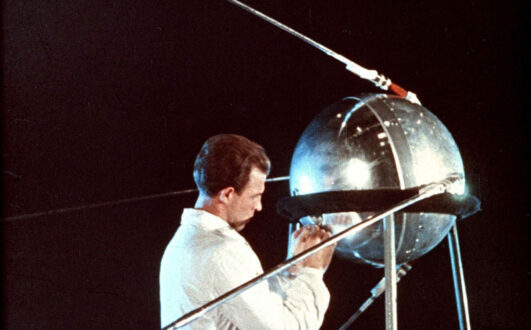 «Он был мал, этот самый первый искусственный спутник нашей старой планеты, но его звонкие позывные разнеслись по всем материкам и среди всех народов как воплощение дерзновенной мечты человечества».