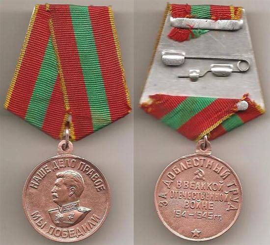Награду «За доблестный труд в Великой Отечественной войне 1941-1945годов» могли получить все работники тыла – рабочие, служащие, колхозники, деятели науки и культуры, работники советских, партийных, профсоюзных и других общественных организаций, обеспечивавшие своим доблестным и самоотверженным трудом победу Советского Союза над Германией в Великой Отечественной войне. Для награждения медалью надо было проработать в период с июня 1941 года по май 1945 года не менее одного года.