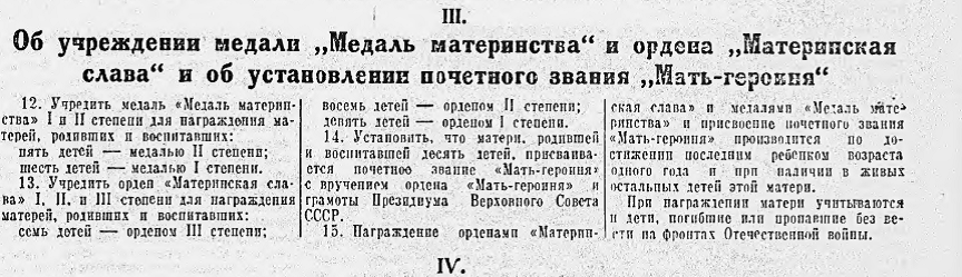 Одновременно с орденом «Мать-героиня» появились «Медаль Материнства» и орден «Материнская слава».