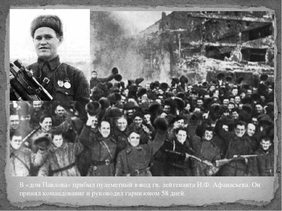 Ожесточенность противоборства достигла своего наивысшего предела. Бои шли за каждый квартал, переулок, за каждый дом, за каждый метр земли. В одном доме советские и немецкие подразделения могли занимать разные этажи. Всемирную известность получили подвиги бойцов «Дома Павлова», удерживавшие его в течение 58 дней. Враг по этому дому наносил удары авиацией, вел артиллерийский и минометный огонь, но защитники дома не отступили ни на шаг. Состав защитников «Дома Павлова» был многонациональным: 11 русских, 6 украинцев, грузин, казах, узбек, еврей и татарин.