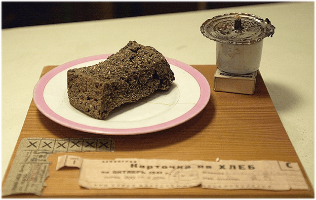 Люди ели все, что можно было съесть: цветы (из них делали лепешки), растворяли и варили плитки столярного клея с лавровым листом, олифу, на которой поджаривали хлеб.