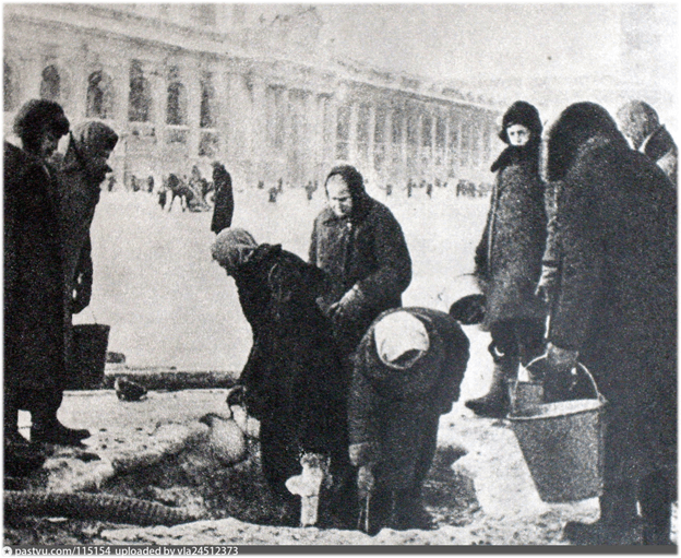 Голод – не единственная трудность, подстерегавшая ленинградцев. Сильные морозы еще больше ужесточили условия их существования. Отопления и водоснабжения в домах не было. Люди делали проруби в Неве и совершали настоящие подвиги, добираясь до воды.
