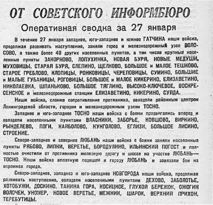 Федеральным законом «О днях воинской славы и памятных дат России» от 13 марта 1995 года 27 января установлен как День воинской славы России – День полного освобождения Ленинграда от фашистской блокады (1944 год).