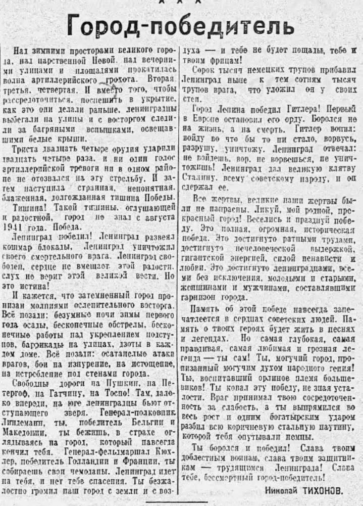 А ведь именно 9 августа по плану фашистского командования город должен был пасть. На этот день был даже назначен парад войск. Однако вместо немецких маршей по громкоговорителям транслировали Ленинградскую симфонию, её слышали и в наших, и в немецких окопах.
