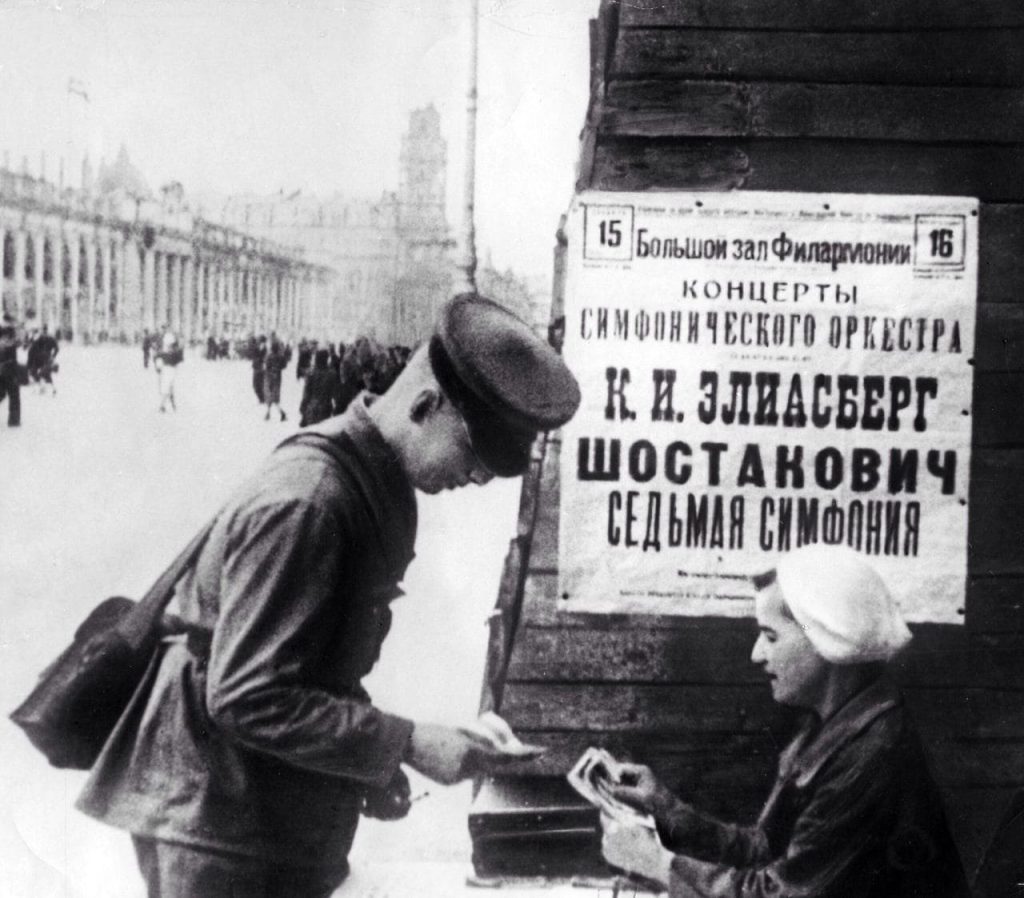 Дмитрий Шостакович встретил войну в Ленинграде и уже в первые недели стал писать Седьмую симфонию, посвящённую родному городу. В середине октября, ослабевший от голода, с двумя малолетними детьми композитор был эвакуирован в Куйбышев, где закончил симфонию.