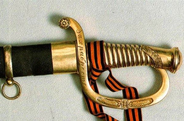 Екатерина II продолжила эту традицию и с 1774 года ввела для офицеров армии и флота знак отличия за военные подвиги - Золотое оружие с надписью «За храбрость». В начале 19 века награждение оружием было приравнено к боевым наградам и закреплено законодательно. Среди наиболее известных личностей, награжденных Золотым оружием, такие видные военачальники, как: А.П. Ермолов, П.И. Багратион, Д.В. Давыдов, М.И. Кутузов и другие.