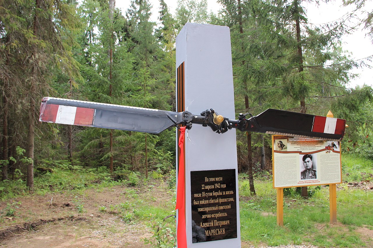 5 апреля 1942 года в районе этого так называемого «Демянского котла» во время вылета по прикрытию бомбардировщиков в бою с немецкими истребителями самолет Як-1 А.П. Маресьева был подбит. Он пытался совершить вынужденную посадку в лесу, заприметив там подходящее озеро. Однако его самолет зацепился шасси за верхушки сосен и перевернулся. Самолет упал в глубокий снег, а сам летчик получил тяжелые ранения, но остался жить.