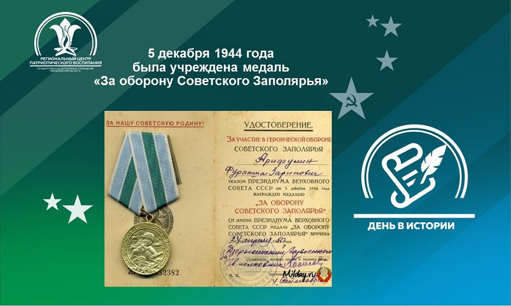 5 декабря 1944 года была учреждена медаль «За оборону Советского Заполярья»