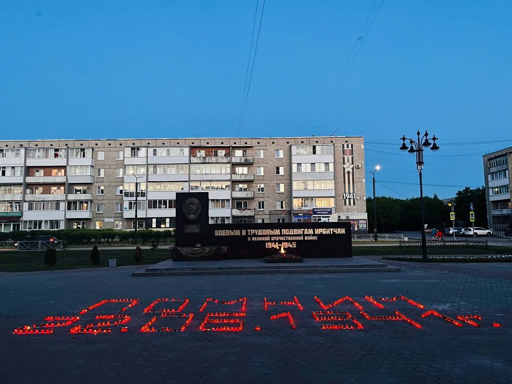 В рамках акции «Свеча Памяти» прошёл митинг, после минуты молчания слово «ПОМНИМ» и дата «22.06.1941» были выложены из зажженных свечей в лампадах на Бульваре Победы. В мероприятии приняли участие волонтёры из всех общеобразовательных организаций города Ирбита, представители военно-патриотического клуба «Беркут», окружного центра патриотического воспитания и допризывной подготовки и студенты Ирбитского гуманитарного колледжа – участники объединений ВПК «Беркут» и ПО «Барс», волонтёры Центра молодёжи города Ирбита, включая волонтёров поискового отряда ППК «Урал-поиск», волонтёры Ирбитского мотоциклетного техникума, представители Российского движения детей и молодёжи «Движение первых», гражданско-патриотического отряда «Пост №1» МАОУ «Школы
