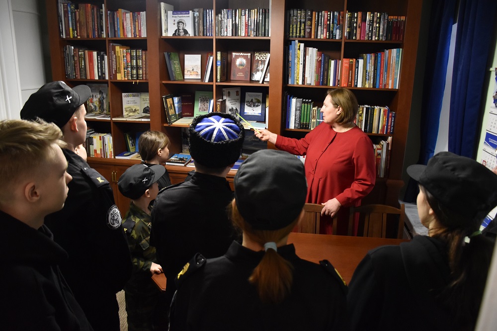Галина Илларионовна провела воспитанников «Барса» в библиотеку штаба, где собраны лучшие издания о казачестве на Урале и в России. Чтение литературы об истории Родины, казачества и духовные писания – это то, что важно для воспитания подрастающего поколения, считает Галина Илларионовна.