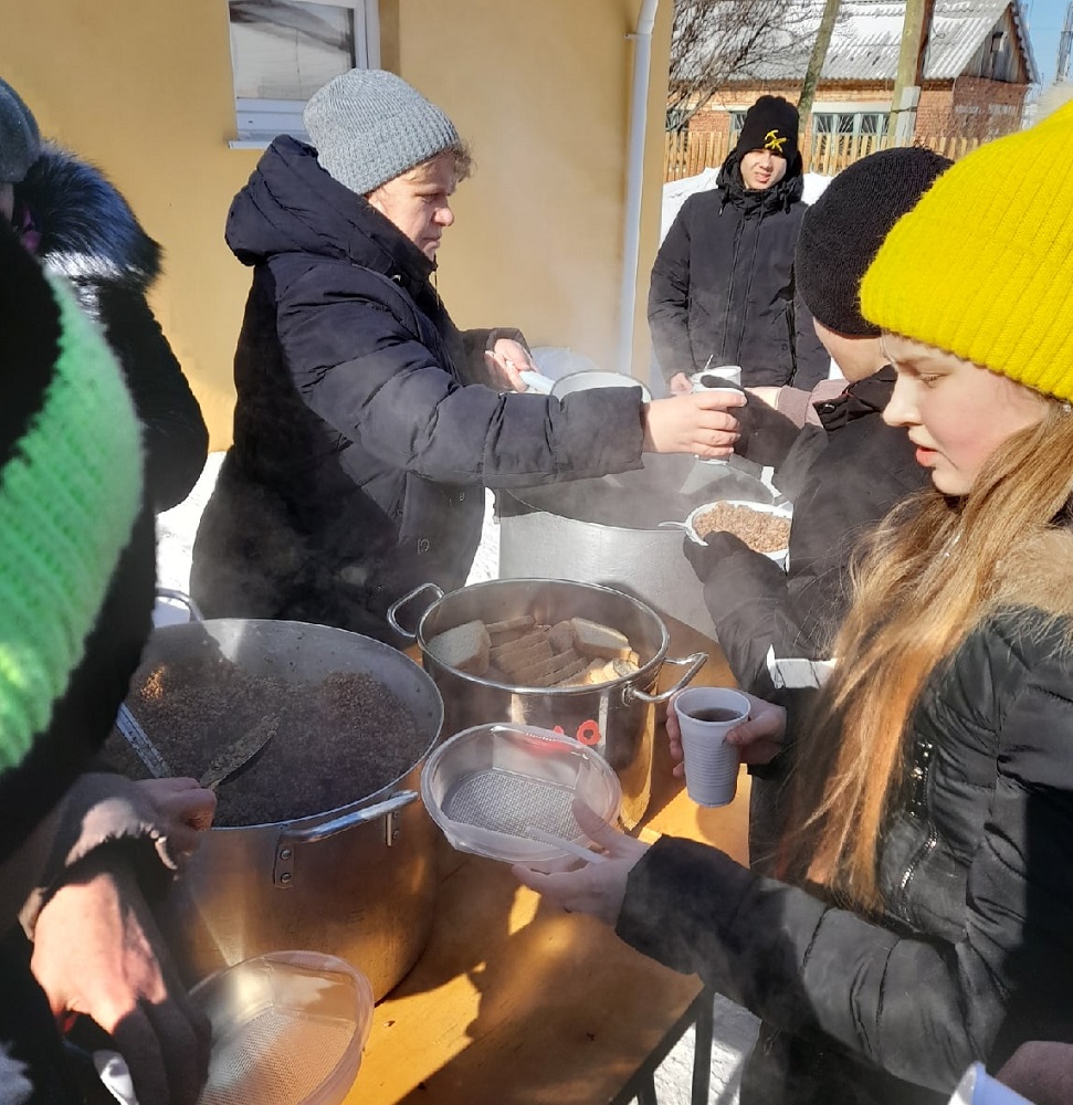 После игры, все участники команд и её организаторы, с удовольствием отведали настоящей солдатской каши и согрелись горячим чаем!