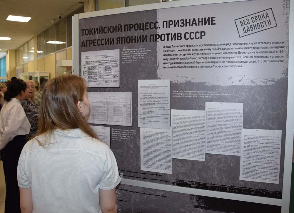 Также, в рамках мероприятия прошла экскурсия по выставке архивных документов «Без срока давности. Суды истории», посвящённой Нюрнбергскому, Токийскому и Хабаровскому процессам, на которых были осуждены военные преступники нацистской Германии и милитаристской Японии. Выставка состоит из 20 стендов, которые при помощи документов и фотоматериалов знакомят с ходом трёх важнейших судебных процессов. Выставка подготовлена Общероссийским общественным движением по увековечению памяти погибших при защите Отечества «Поисковое движение России».