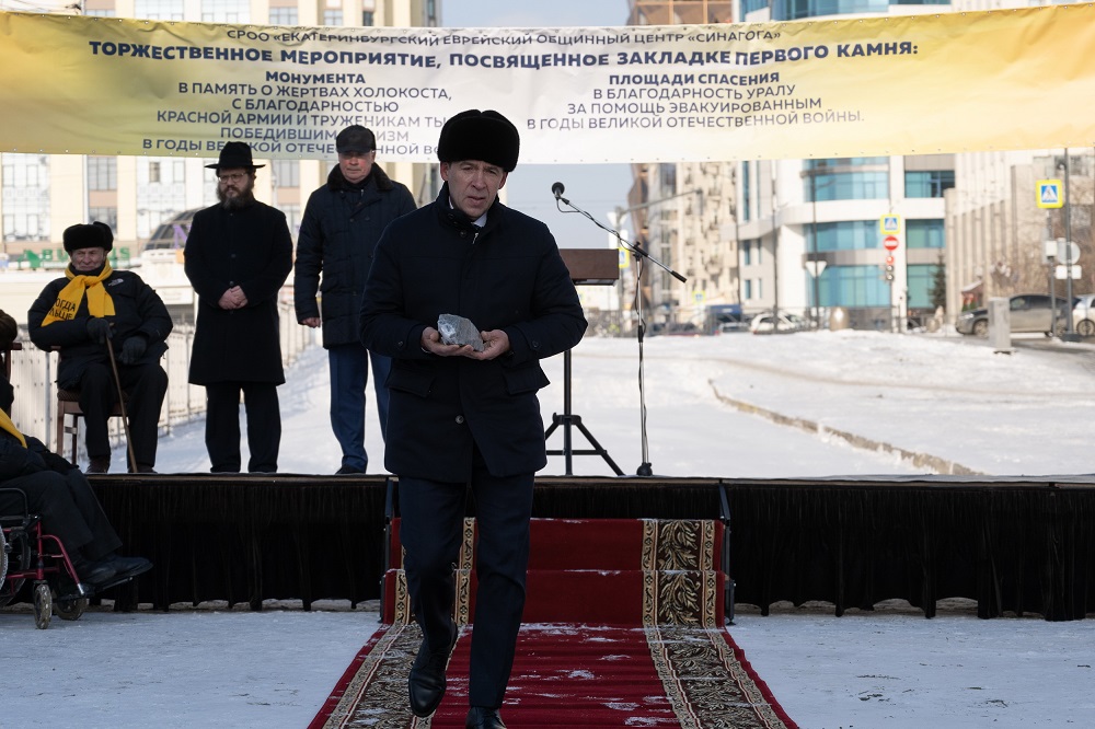 Губернатор Свердловской области Евгений Куйвашев 10 февраля заложил первый камень монумента в память о жертвах Холокоста и площади Спасения, которые появятся перед Синагогой в Екатеринбурге.