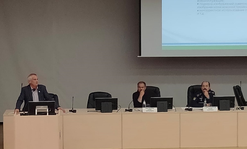 С докладом «Информационное сопровождение реализации патриотического воспитания: вызовы современности» на пленарном заседании выступил начальник отдела информационно-аналитической работы Регионального центра патриотического воспитания Свердловской области полковник запаса Юрий Васильевич Артамонов.