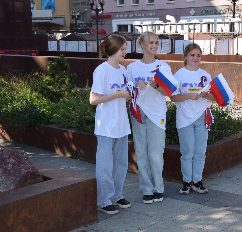 Представители волонтерских и общественных организаций поздравляли жителей Свердловской области с праздником, рассказывали им об истории государственных символов России и вручали российские флажки и ленточки цветов триколора.