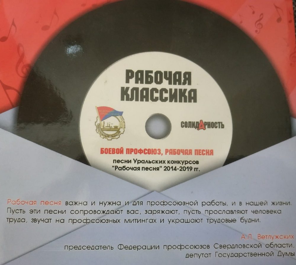 Свердловской области и Федерации Независимых Профсоюзов России. Конкурс песни удостоен почётной грамоты в номинации «Акция» конкурса «Профсоюзный авангард 2015». Традиционно в конкурсе принимают участие представители всех субъектов УрФО, а также ряда других регионов РФ. По итогам конкурса выпускаются видеоролики и диск «Рабочая классика», более подробно о конкурсе: http://www.fnpr.org/molodez/206/