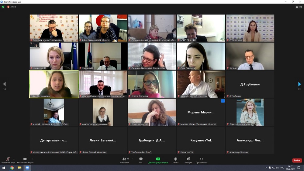 В основной части заседания приняли участие более 40 человек: Свердловское региональное отделение Российского движения школьников, уполномоченные по правам ребёнка в регионах УФО, представители Аппарата полномочного представителя Президента РФ в УФО, представители системы образования, НКО, СМИ и другие.