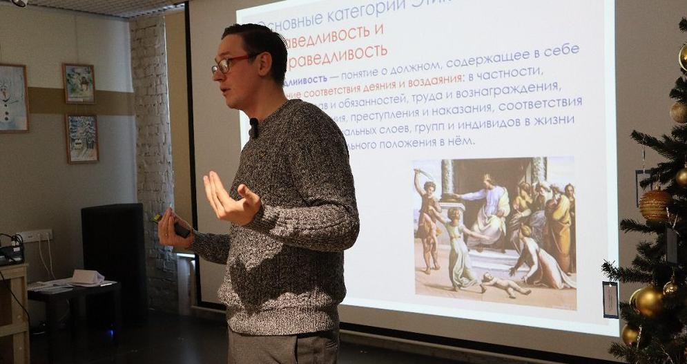 Центральная городская библиотека Берёзовского устроила марафон для студентов берёзовского техникума «Профи». Младший научный сотрудник Института философии и права УрО РАН Михаил Витушко подключил ребят к обсуждению таких понятий, как мораль и этика.