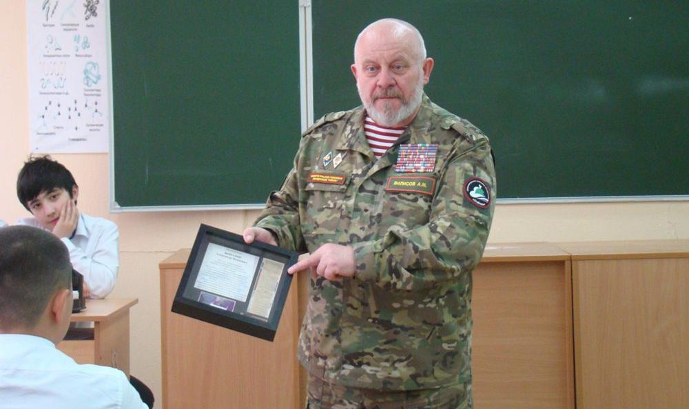 А.М. Вилисов – частый гость 82-й школы, его «уроки мужества» школьники посещают с большим интересом. В завершение встречи педагогический коллектив вручил Александру Михайловичу благодарственное письмо за активную патриотическую работу.