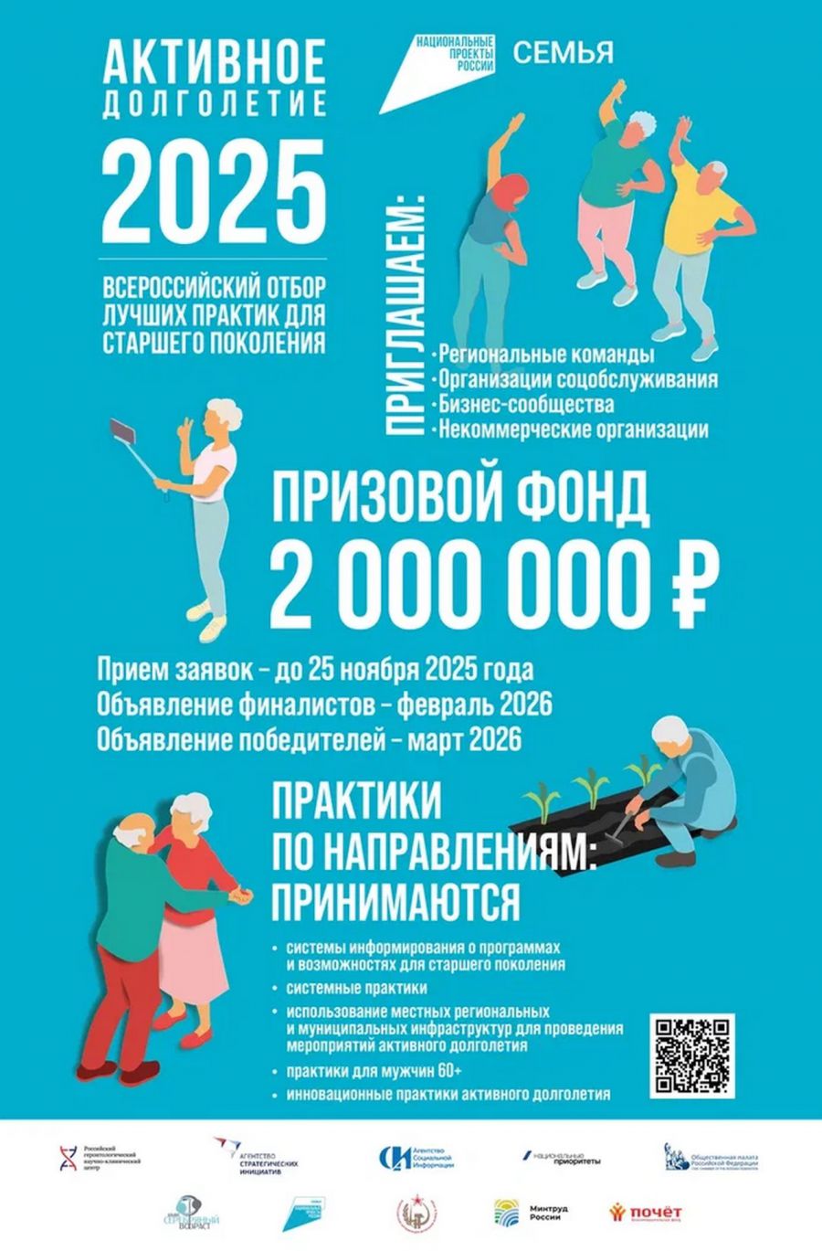 Отбор лучших практик активного долголетия реализуется АНО «Национальные приоритеты» совместно с Министерством труда и социальной защиты Российской Федерации в рамках национального проекта «Семья».