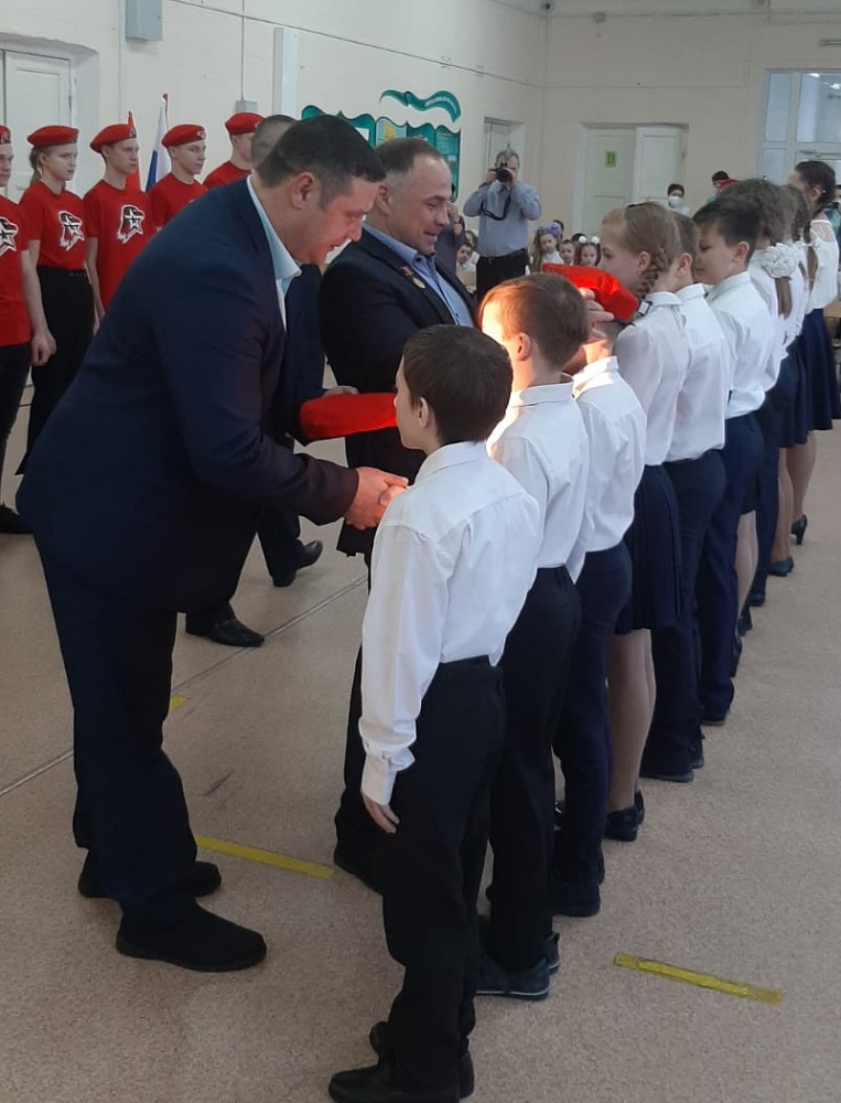 С напутственными словами и поздравлениями выступили председатель Думы Новолялинского городского округа В. А. Горбунов, начальник местного отделения ВВПОД «Юнармия» Новолялинского района А.В. Елохин и директор школы А. А.Твердохлебов.
