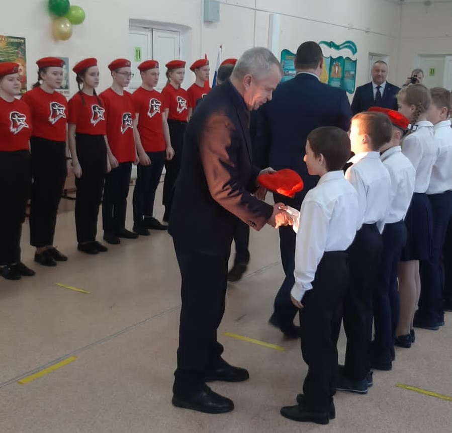 После произнесения новобранцами клятвы знаки принадлежности к общественно-патриотическому движению «Юнармия» – береты – новым членам школьного отряда» Альфа» были вручены почетными гостями.