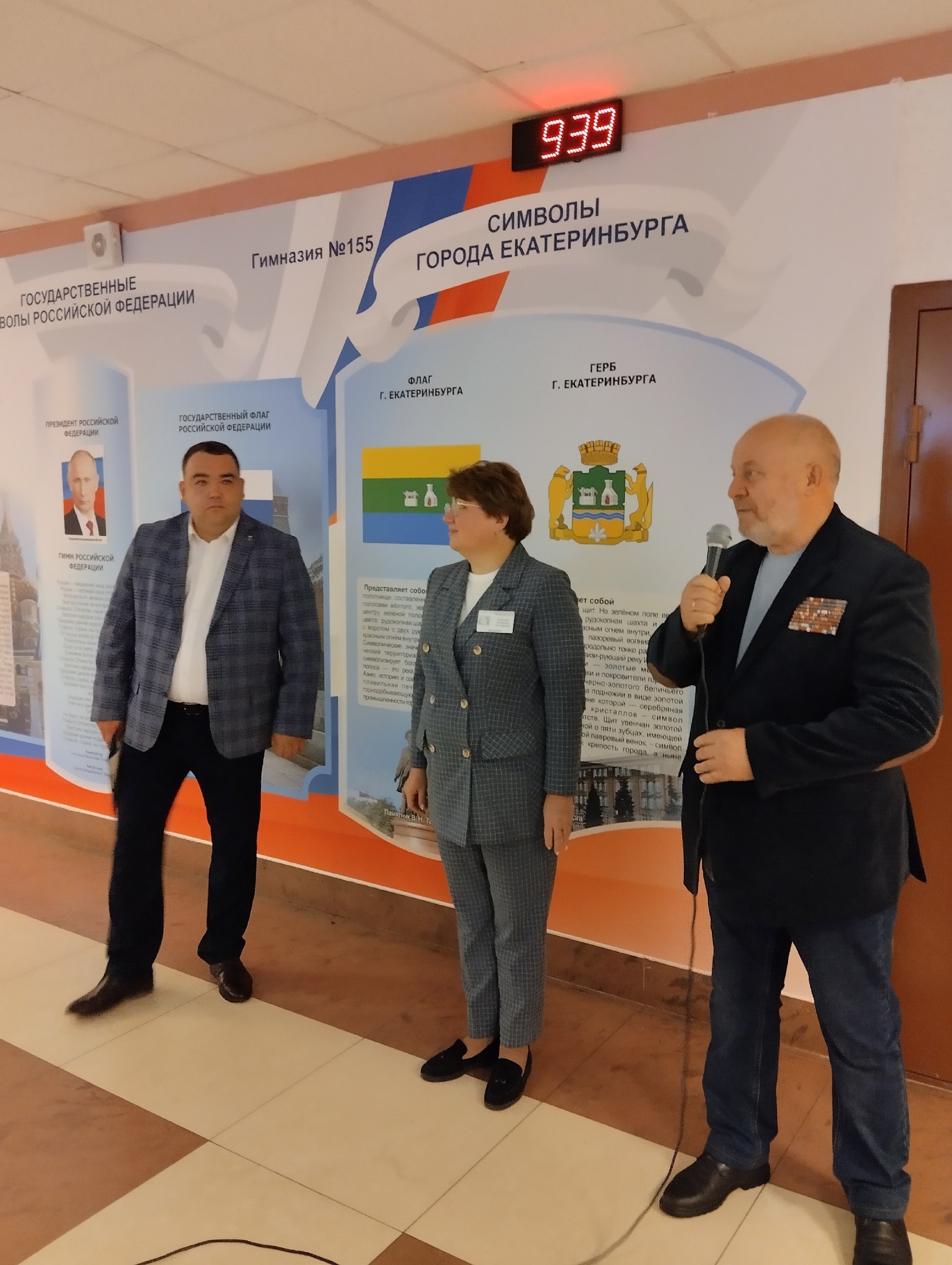 4 сентября 2023 в Гимназии № 155 (г. Екатеринбург) прошло торжественное открытие нового патриотического пространства на 1 этаже. По одному представителю каждого класса присутствовали на церемонии.