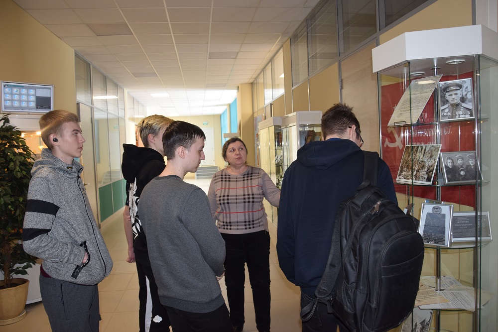 В завершении «Урок Памяти и Мужества» ведущий специалист Регионального центра патриотического воспитания Галина Николаевна Захаренко рассказала ребятам об экспонатах, представленных на «Маршруте Победы», разработанном сотрудниками Центра истории Свердловской области и Регионального центра патриотического воспитания.