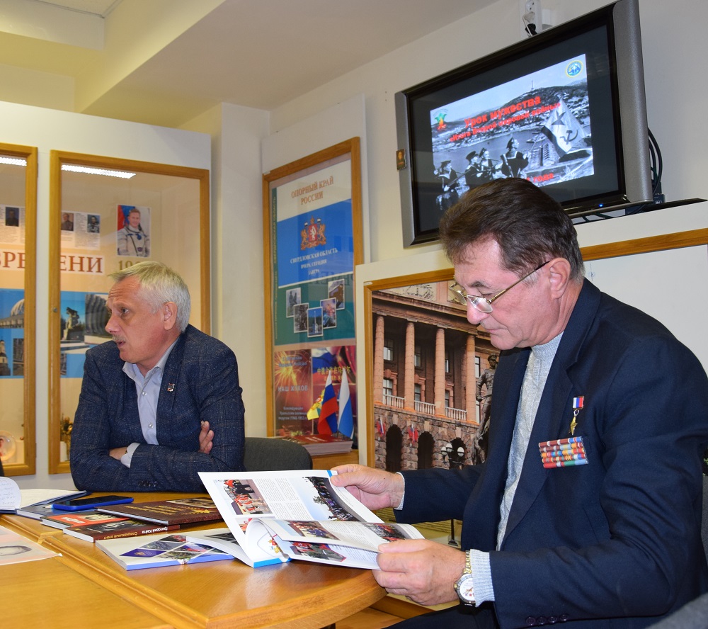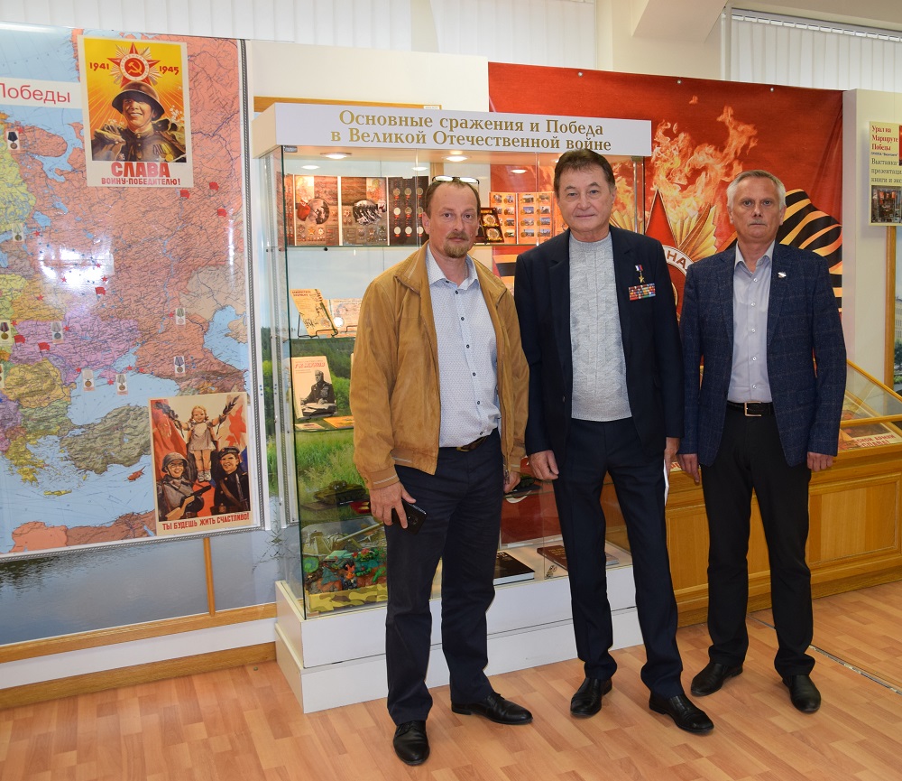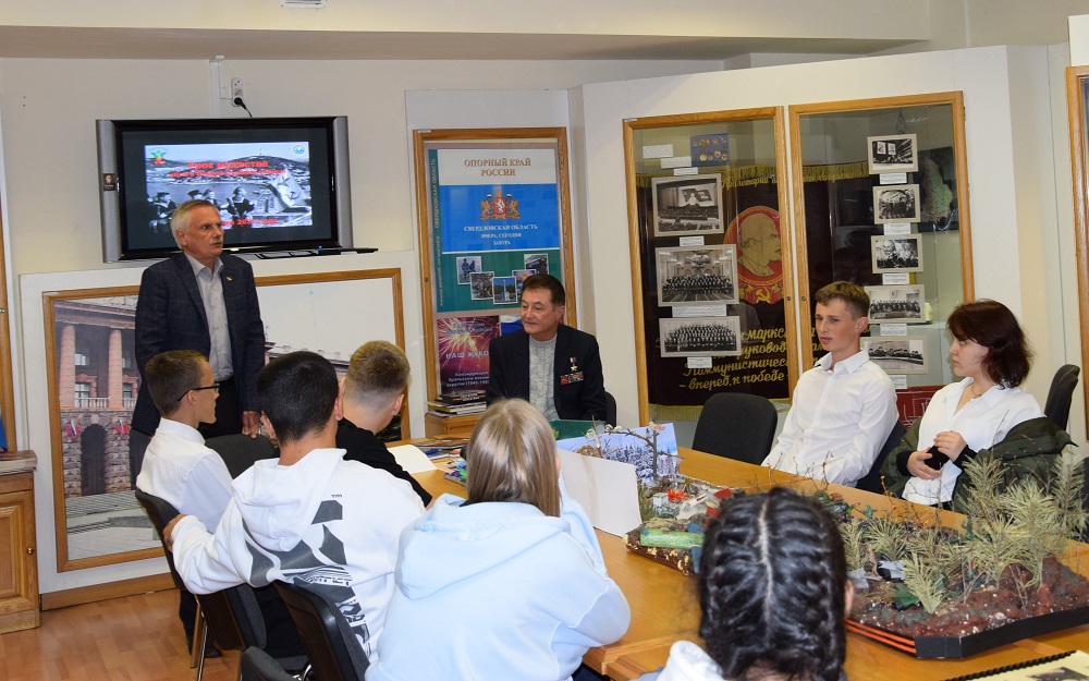 Вместе с директором Регионального центра патриотического воспитания, Героем Российской Федерации Игорем Олеговичем Родобольским и начальником отдела информационно-аналитической работы Регионального центра патриотического воспитания Юрием Васильевичем Артамоновым участники мероприятия – учащиеся екатеринбургской школы № 36 имени дважды Героя Советского Союза М.П. Одинцова вспомнили историю Второй мировой войны. а также обсудили ее итоги.