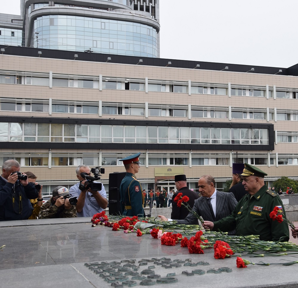 В Екатеринбурге, на площади Советской Армии, у мемориала «Черный тюльпан», при поддержке Министерства образования и молодежной политики Свердловской области состоялась мемориальная патриотическая акция, посвящённая Дню солидарности в борьбе с терроризмом, участниками которой стали Первый Заместитель Губернатора Свердловской области Александр Геннадьевич Высокинский, Первый заместитель председателя Законодательного Собрания Свердловской области Виктор Анатольевич Шептий, Заместитель Министра образования и молодежной политики Свердловской области Юрий Николаевич Зеленов, представители традиционных конфессий, Центрального военного округа, правоохранительных органов, курсанты, участники антитеррористических операций, ветераны боевых действий, члены общественных организаций, студенты, школьники, воспитанники кадетских классов, кадетских корпусов и военно-патриотических клубов, юнармейцы.