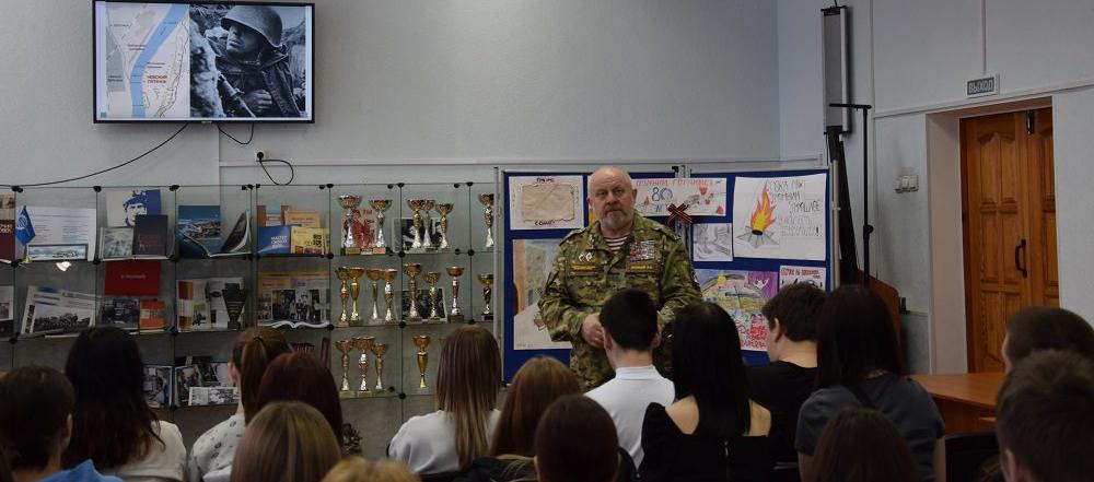 В мероприятии принял участие сотрудник Регионального центра патриотического воспитания Свердловской области, кавалер двух орденов Мужества, полковник запаса А.М. Вилисов. Александр Михайлович – активный участник поисковых экспедиций, ездит в поисковые экспедиции, которые проходят в Ленинградской области. Он рассказал студентам о работе современных поисковых отрядов на местах боев за город Ленинград.