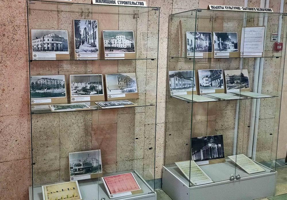 В разделе «Жилищное строительство» представлены фотографии улиц города и объектов, введенных в эксплуатацию в период 1945-1950 гг. В документах есть информация, что в результате выполнения первого послевоенного пятилетнего плана обеспеченность жилой площадью на каждого жителя в городе за 5 лет увеличилась на 1 м2. После окончания войны застройка города велась только капитальными зданиями.