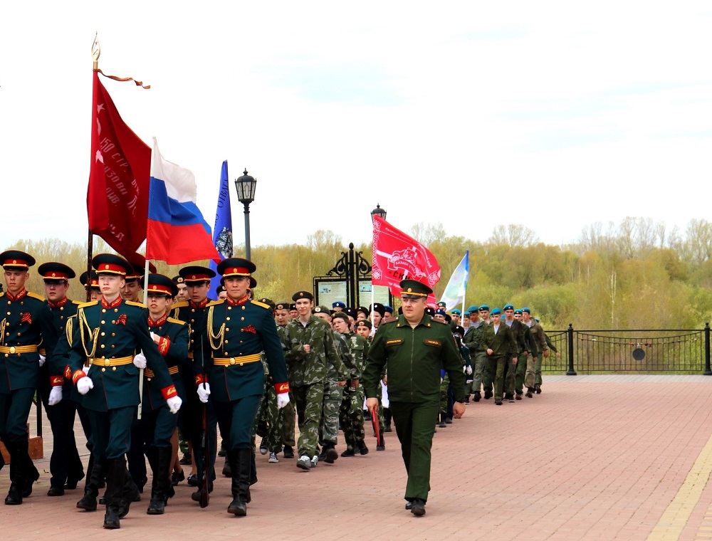 Наступила главная часть мероприятия – парад курсантов ВПК. Торжественно, чеканя шаг, воспитанники начали движение по площади, во граве колонны – знаменная группа ВПК «ИРБИС». Торжественным маршем прошли парадные расчёты курсантов, юнармейцев и кадет военно-патриотических объединений.