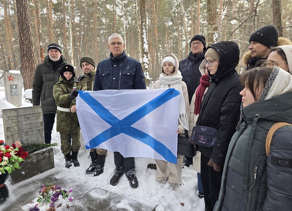 Состоялась торжественная церемония возложения цветов к могиле участника сражения, машинного квартирмейстера Сергея Яковлевича Кабанова