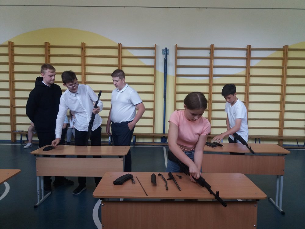 В рамках занятия юнармейцы, совместно с инструктором, вспомнили историю создания автомата Калашникова, обсудили баллистические и конструктивные данные, состав и назначение основных частей и механизмов АК, а также продемонстрировали свои навыки разборки – сборки АК.