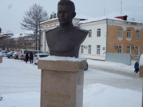 Бюст Героя установлен на Аллее славы в посёлке городского типа Белоярский Свердловской области.