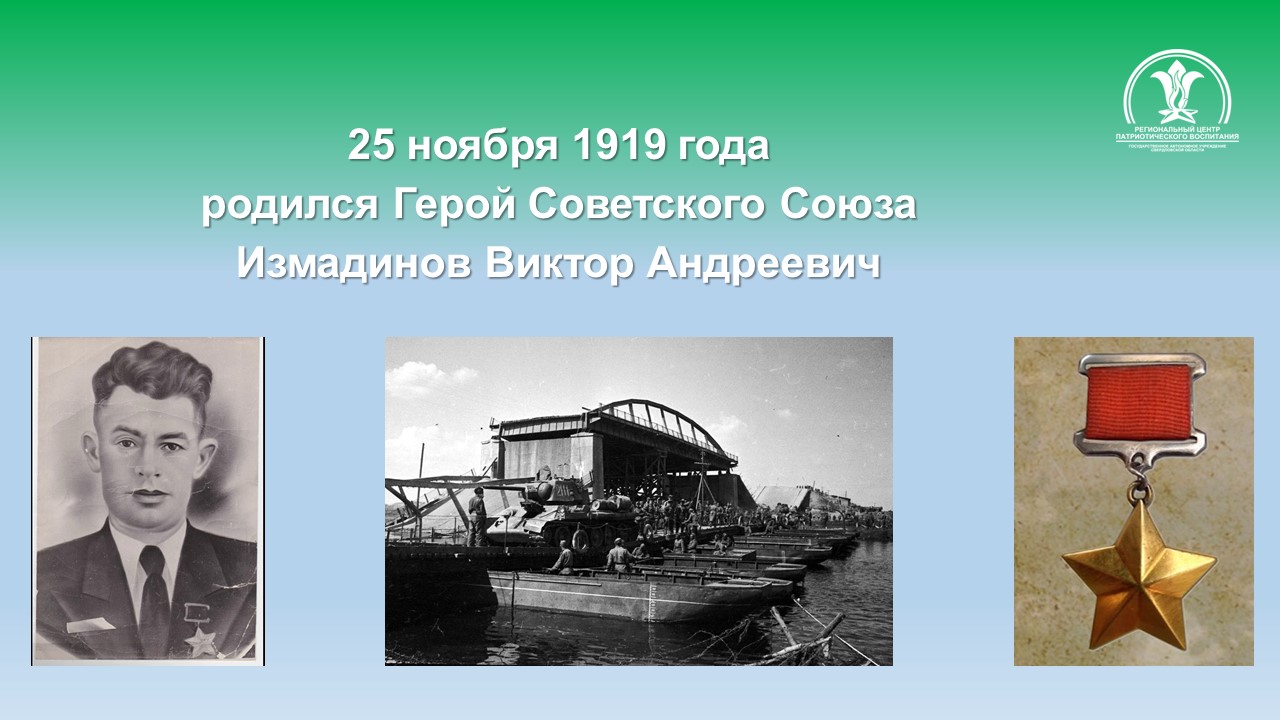 Измадинов Виктор Андреевич – моторист 5-го тяжелого моторизованного понтонно-мостового Выборгского Краснознамённого ордена Кутузова полка 65-й армии 2-го Белорусского фронта, старший сержант.