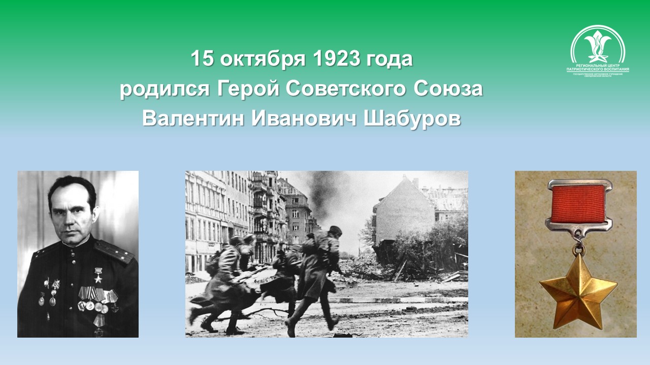 Валентин Иванович Шабуров, Герой Советского Союза, родился 15 октября 1923 года в уральской деревеньке Луговой на реке Реж.