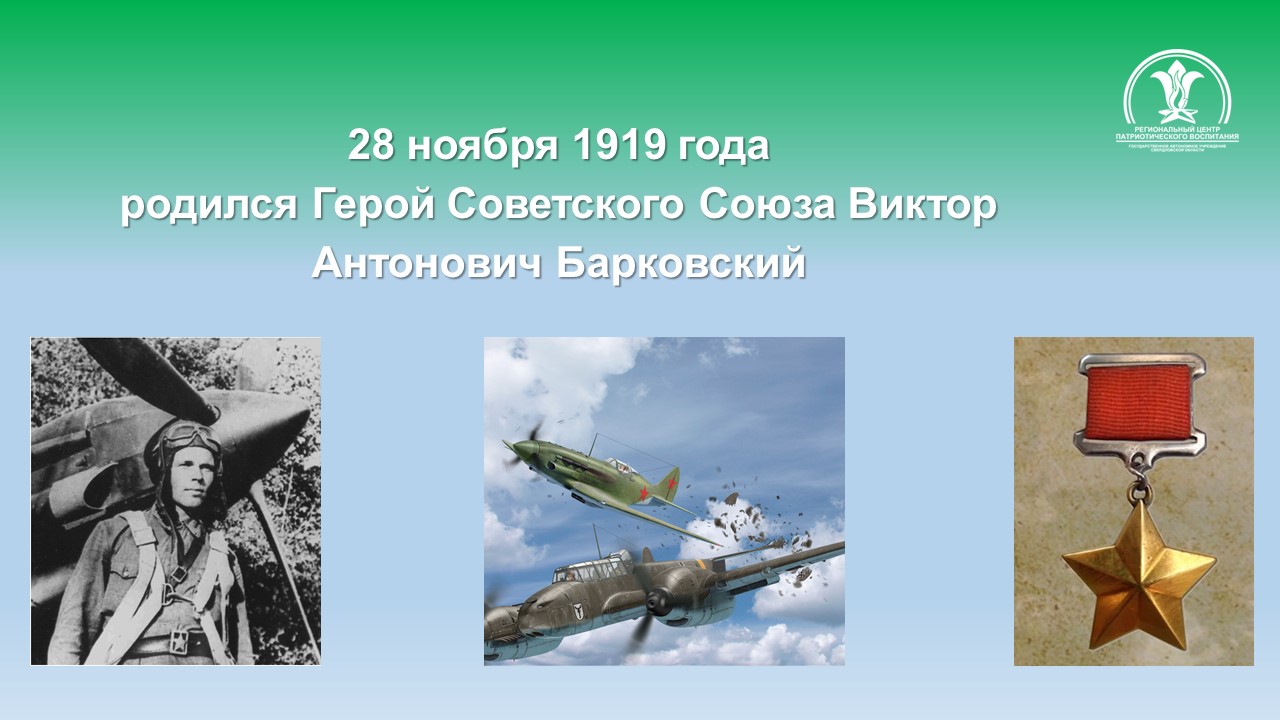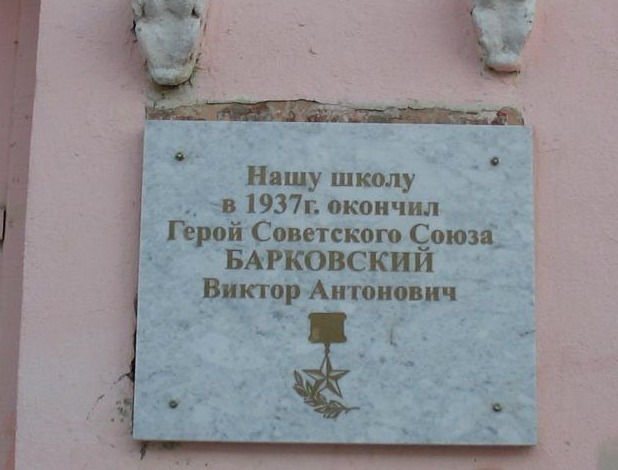 Участник Великой Отечественной войны с июня 1941 года. Младший лейтенант Барковский В.А. к маю 1942 года произвёл 96 боевых вылетов, нанеся противнику значительный урон.