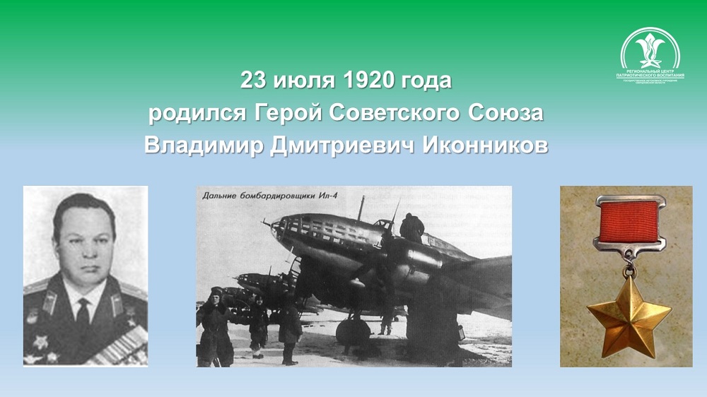 Иконников Владимир Дмитриевич – заместитель командира эскадрильи 30-го гвардейского авиационного Смоленского Краснознамённого полка дальнего действия 48-й авиационной дивизии 8-го авиационного корпуса авиации дальнего действия (АДД), гвардии капитан.