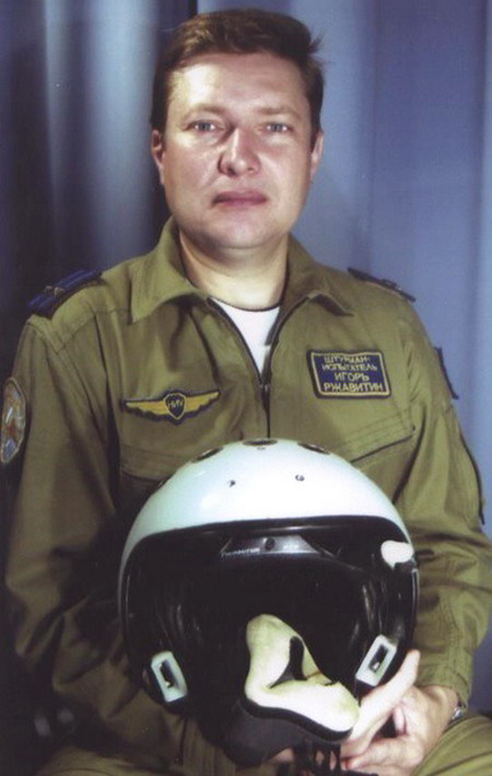 Ржавитин Игорь Викторович – штурман-испытатель Службы лётных испытаний истребительной авиации Лётно-испытательного центра 929-го Государственного лётно-испытательного центра имени В.П. Чкалова, полковник.