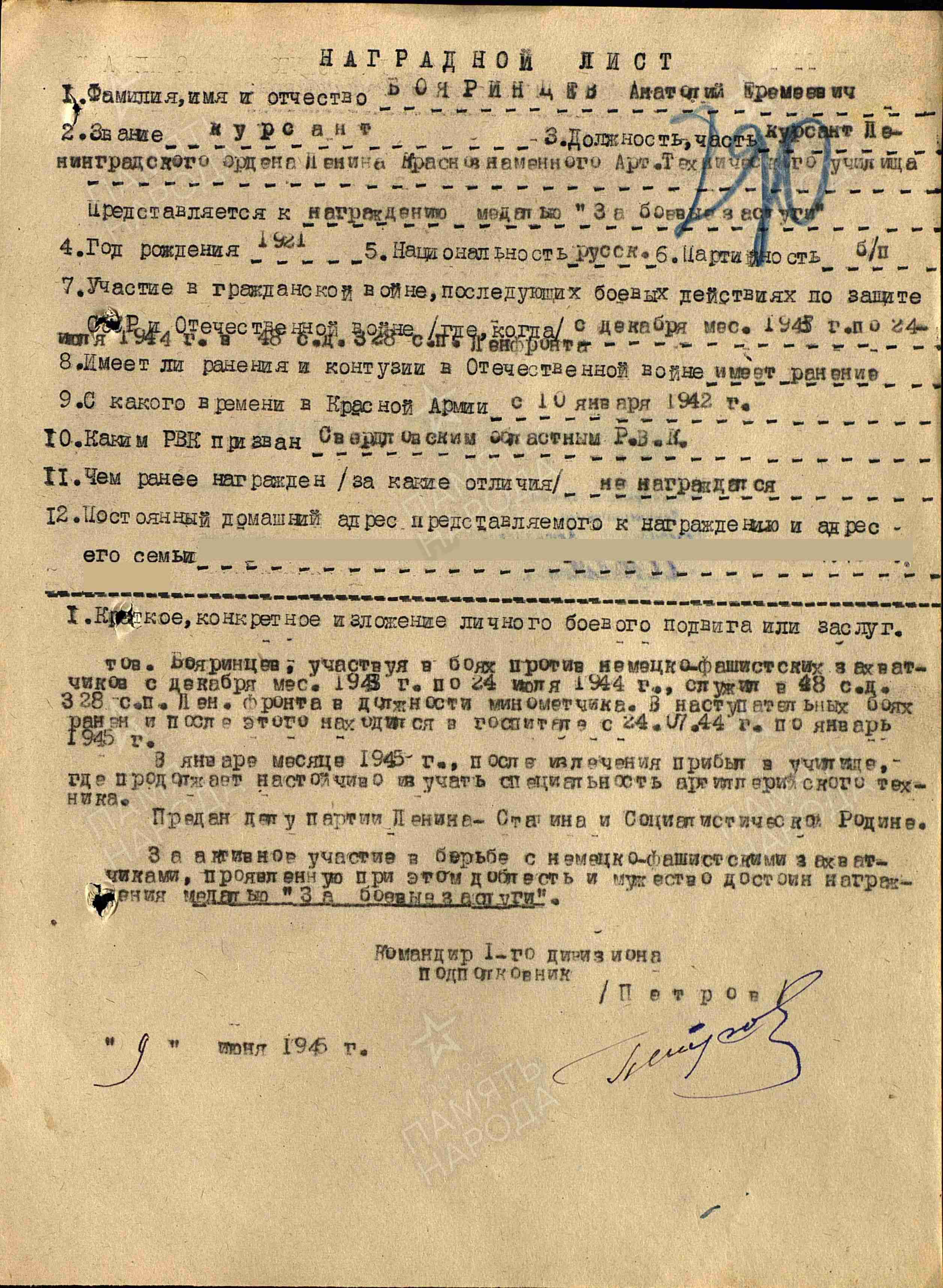 Началась Великая Отечественная война. С четвертого курса он ушел на фронт. Воевал на Первом Украинском, затем - на Ленинградском фронтах.