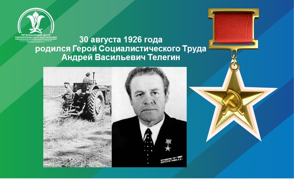 Телегин Андрей Васильевич – председатель колхоза имени Чапаева Алапаевского района Свердловской области. Родился 30 августа 1926 года в селе Арамашево Верхотурского района Уральской области, ныне – Алапаевского района Свердловской области, в семье крестьянина. Русский.