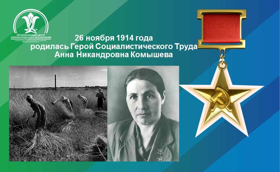 Указом Президиума Верховного Совета СССР от 17 марта 1948 года за получение высоких урожаев пшеницы и ржи при выполнении колхозом обязательных поставок и натуроплаты за работу МТС в 1947 году и обеспечение семенами культур для весеннего сева 1948 года Комышева Анна Никандровна, в числе 10 передовиков колхоза, удостоена звания Героя Социалистического Труда с вручением ордена Ленина и золотой медали «Серп и Молот».
